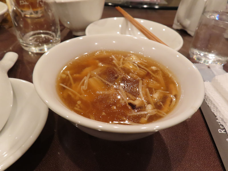 | 2階に通されますよ。 全員揃いましたので、前田由利さんのご挨拶、法人会員の菅組・菅社長の乾杯の音頭で懇親会開始です。 本日は「フカヒレスープ付季節のお任せフルコース」だと思います。 |